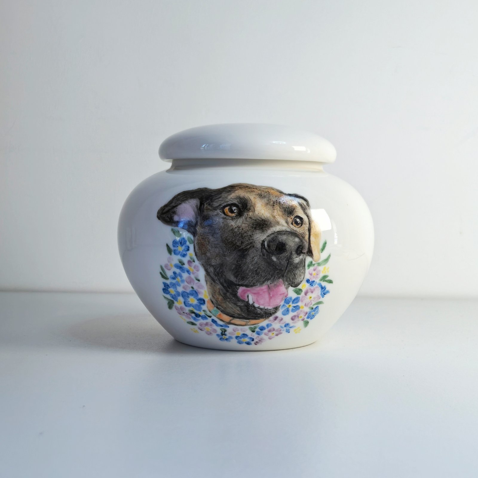 This hand-painted ceramic keepsake is created to honor the love, memories, and quiet companionship you shared with your pet.