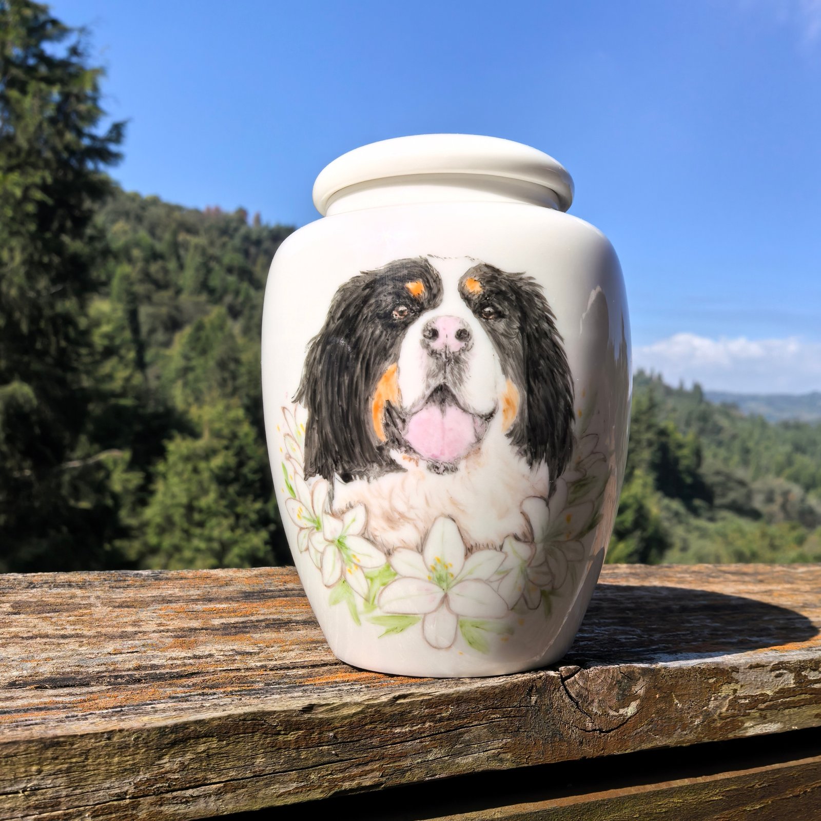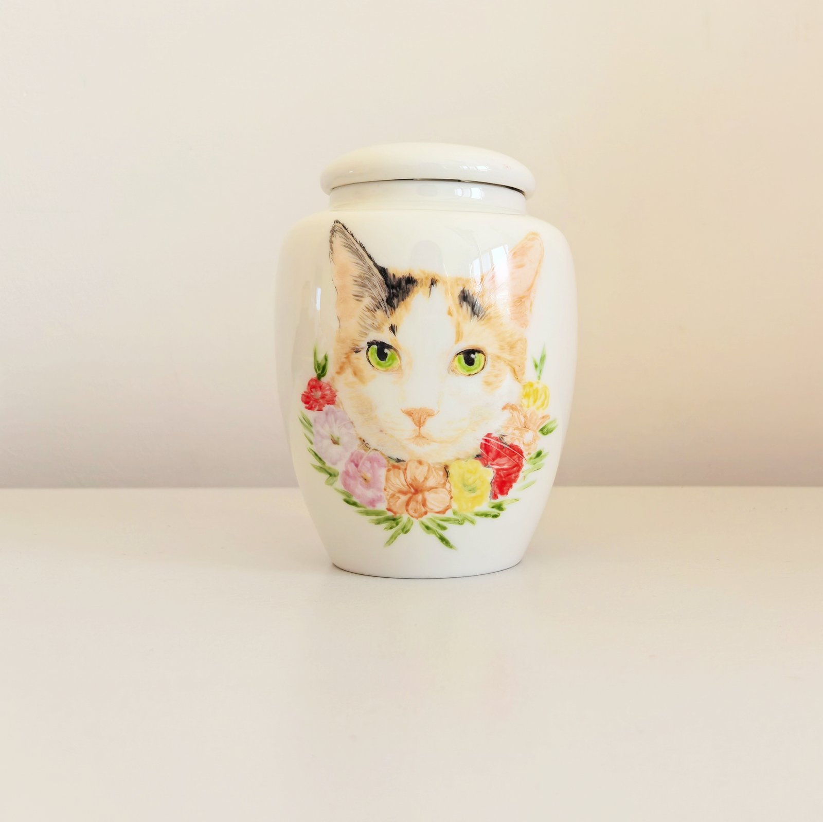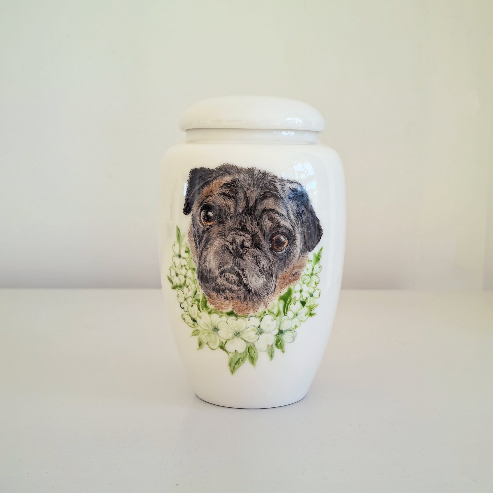 Hand Painted Pet Portrait Urn: Ceramic Memorial Jar for petsHand Painted Pet Portrait Urn: Ceramic Memorial Jar for pets