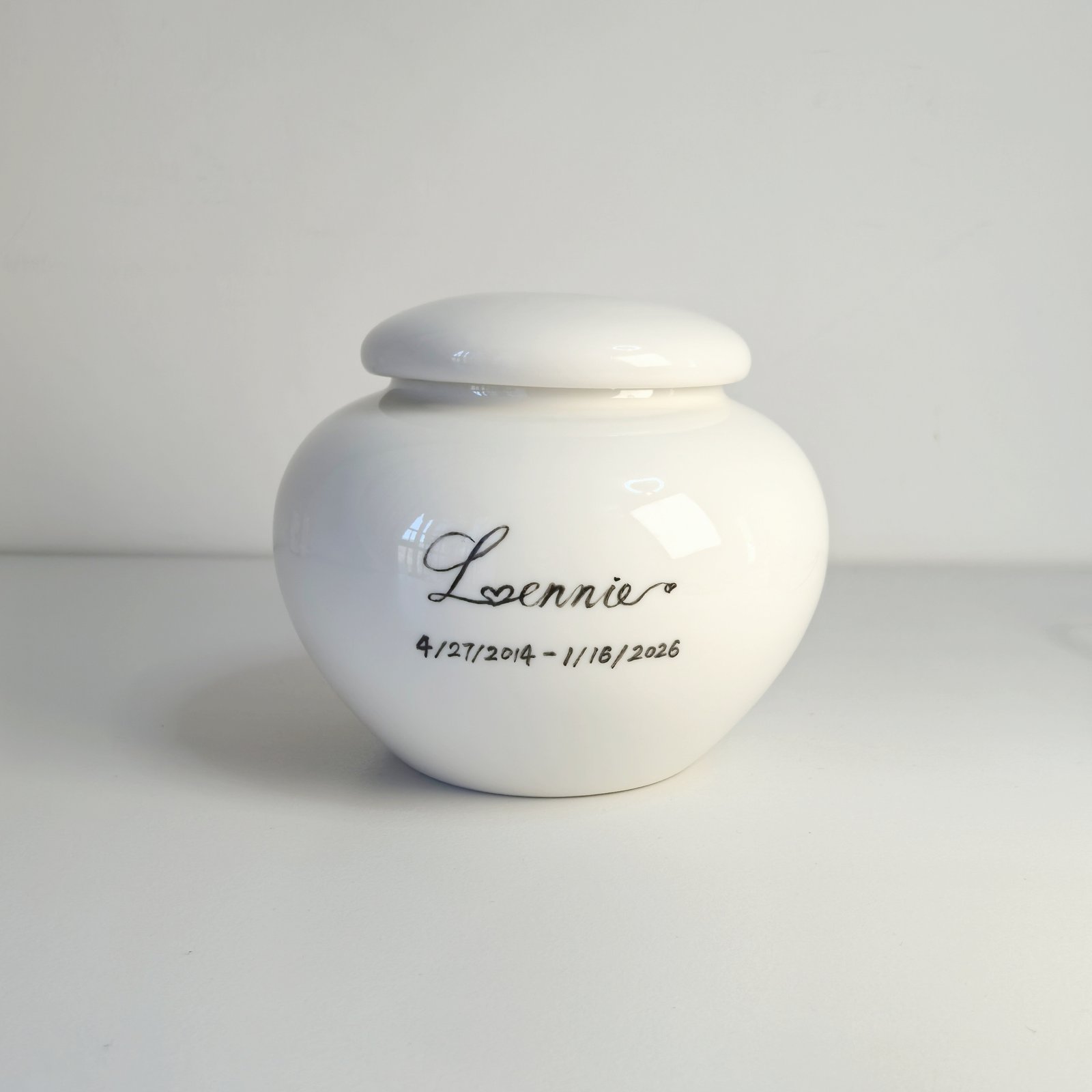 This hand-painted ceramic keepsake is created to honor the love, memories, and quiet companionship you shared with your pet.